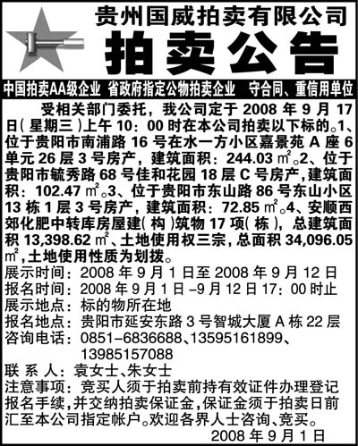 友情鏈接: 貴州省拍賣行業(yè)協(xié)會(huì) | 中國拍賣行業(yè)協(xié)會(huì) | 貴州省高級人民法院 | 貴州省商務(wù)廳 |
