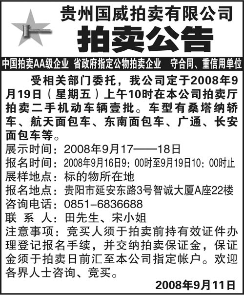 版權(quán)所有 ? 2020 貴州國威拍賣有限公司 保留所有權(quán)利 技術(shù)支持:興思匯科技 Powered by www_gzgwpm_com.wzgjsc.com